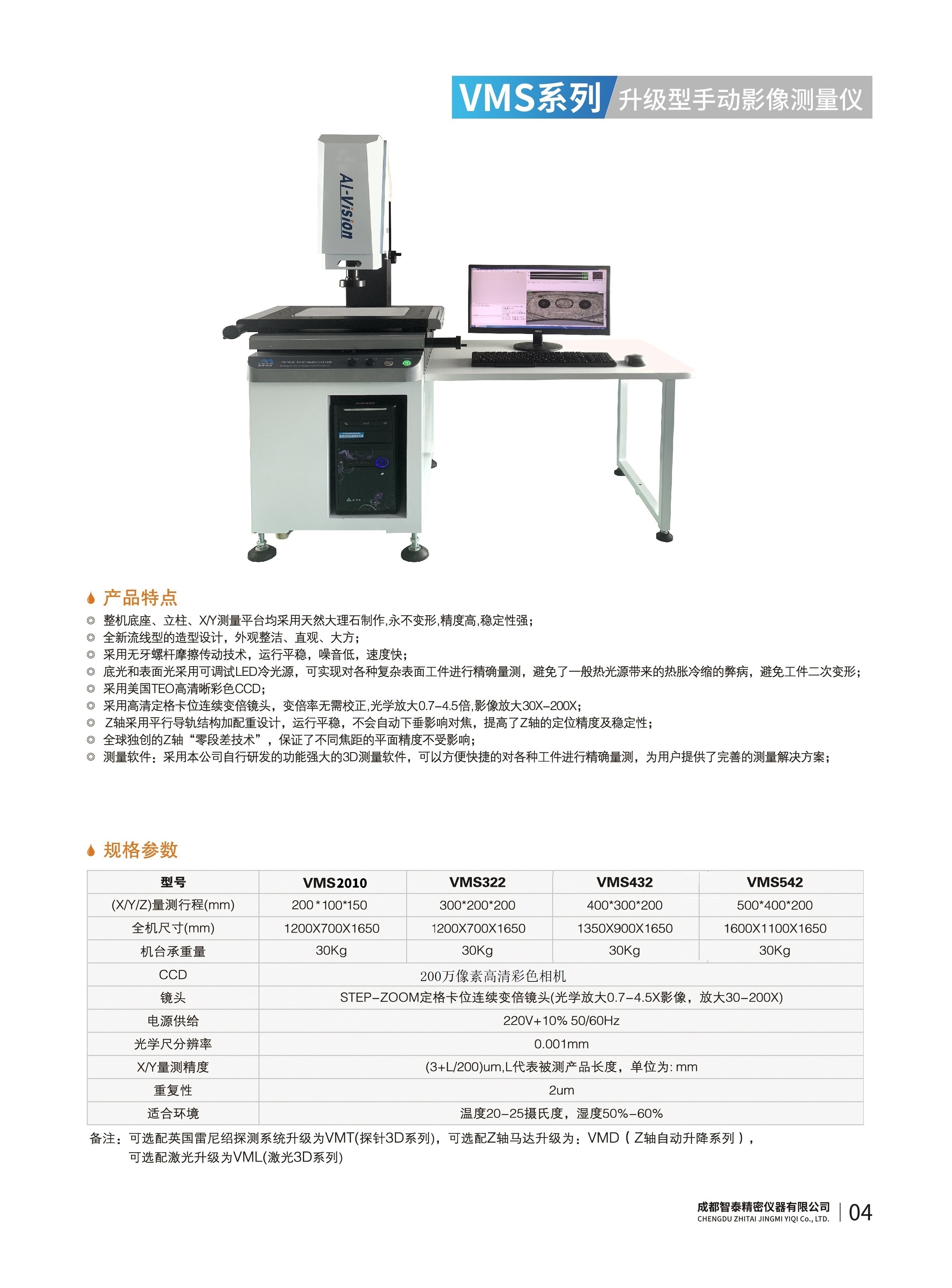 成都智泰精密儀器有限公司專注于精密測量儀器,人工智能,智能制造領域,專業(yè)從事智能視覺自動化檢測解決方案的貿易型企業(yè)。公司成立于2011年,位于天府之國成都,現(xiàn)有行業(yè)精英十余人,辦公倉儲面積200余平米。 公司主要產(chǎn)品為精密光學影像測量儀,精密輪廓形狀測量儀,精密機器人定位系統(tǒng),精密智能視覺尺寸檢測儀器,精密表面缺陷智能檢測設備,工業(yè)工程特種機器人。 公司憑借過硬的技術實力和產(chǎn)品方案,率先進入智能視覺自動化檢測領域,推廣以精密智能視覺自動化檢測為基礎的機器人自動化應用,公司不斷整合上下游的資源,擁有巨大的全產(chǎn)業(yè)鏈優(yōu)勢。客戶群體覆蓋了我國精密制造業(yè)的多數(shù)領域,包括航空、航天、軍工、汽車、新能源、光伏、食品,精密電子、精密機械、模具、PCB、LCD、五金、塑膠、醫(yī)療、教育、計量及科研院所等行業(yè)。 公司創(chuàng)新的產(chǎn)品能滿足生產(chǎn)與制造行業(yè)客戶的要求,訓練有素的工程師能及時提供多種技術服務,如解...